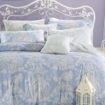 Идеальным местом для романтического отдыха станет кровать с этим комплектом: мелкие мерцающие соцветия на небесно-голубом фоне в сочетании с вставками из полупрозрачного кружева придают воздушность и лёгкость дизайну, становясь сообщниками ваших самых сердечных моментов.
