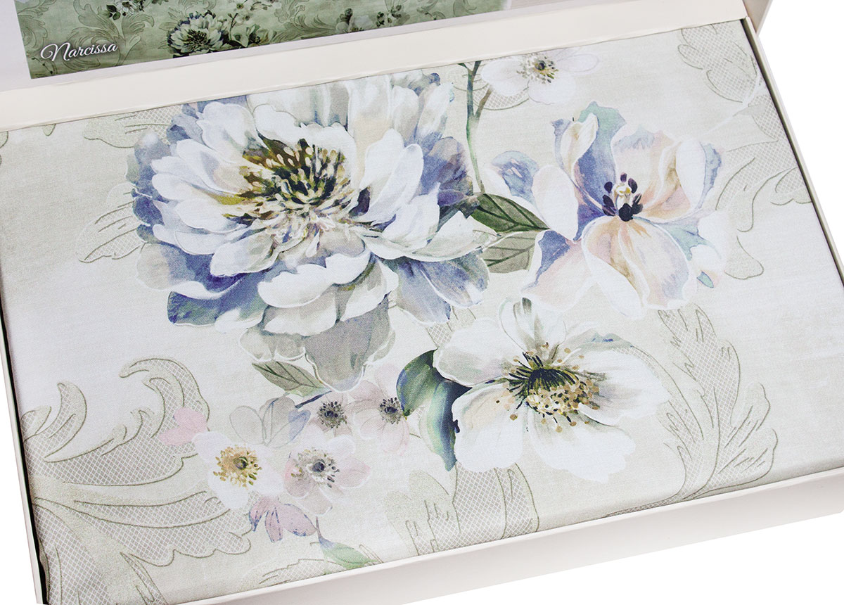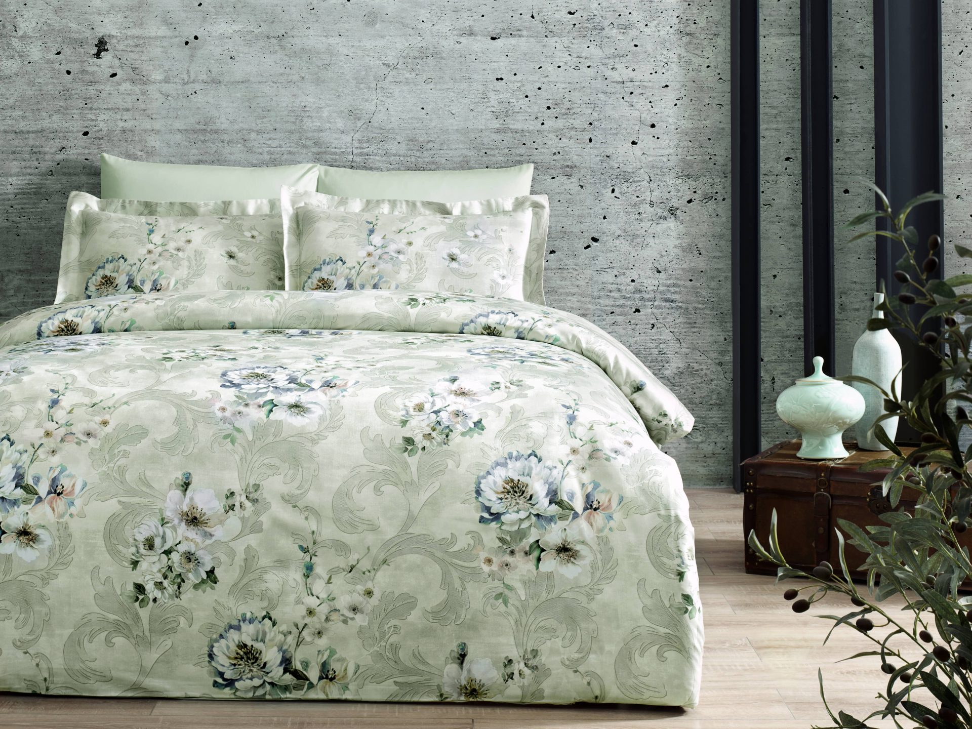 Tivolyo Home является премиальным турецким брендом широко известным на европейском рынке. Вся продукция выполнена под тщательным контролем специалистов, только из высококачественных материалов при учете всех современных тенденций в мире моды. В коллекции сатин-жатый шелк в основном используется цветочный орнамент в сочетании с однотонной простыней идеально подобранной в цвет. Внутрення сторона пододеяльника, простыня и две наволочки из сатина, а лицевая сторона пододеяльника и две другие наволочки — из жатого шелка. Изделия бережно сложены в подарочную упаковку с логотипом фирмы.
